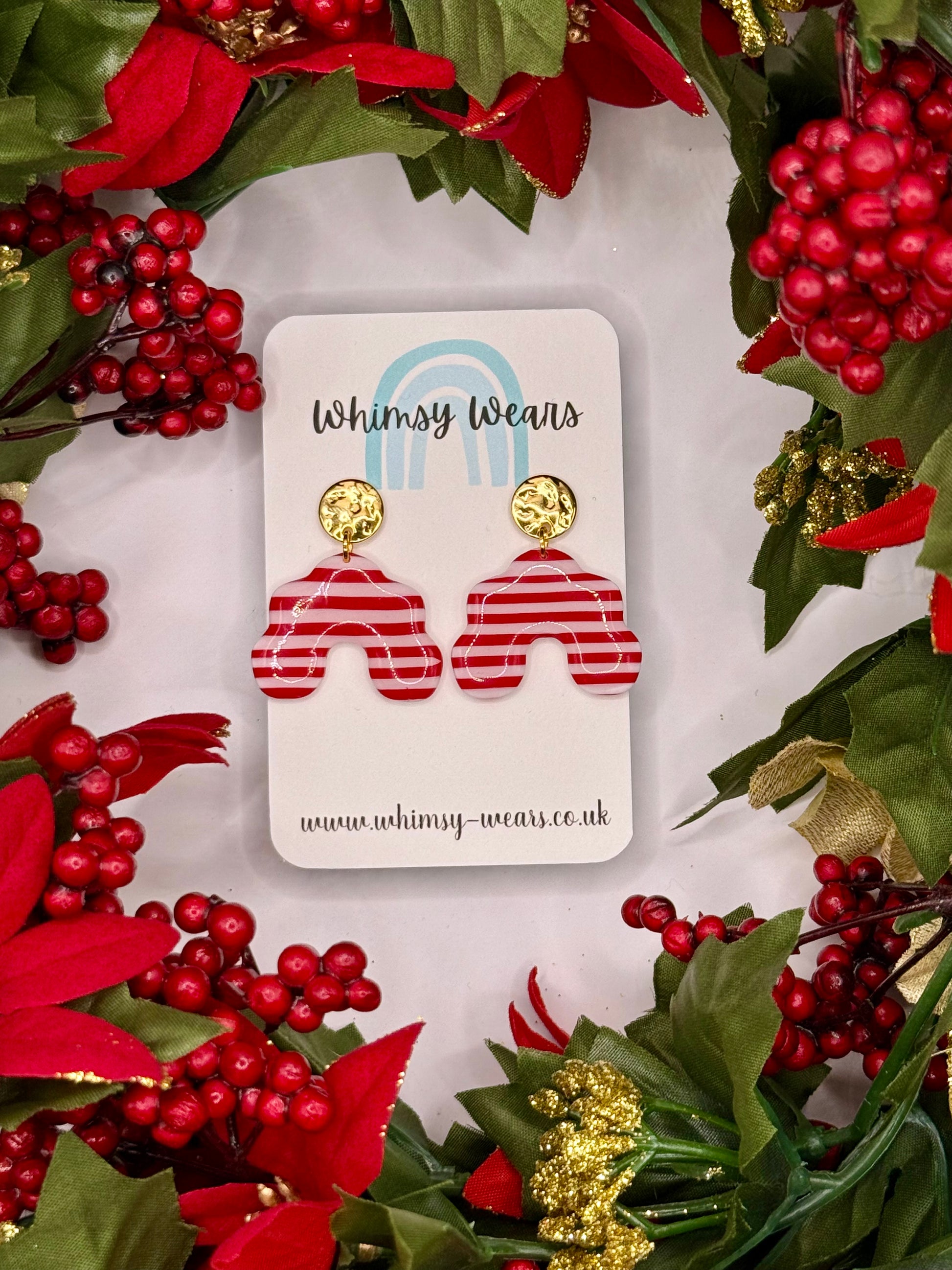 Candy cane stripe arch earrings with either silver or gold coloured circle stud.