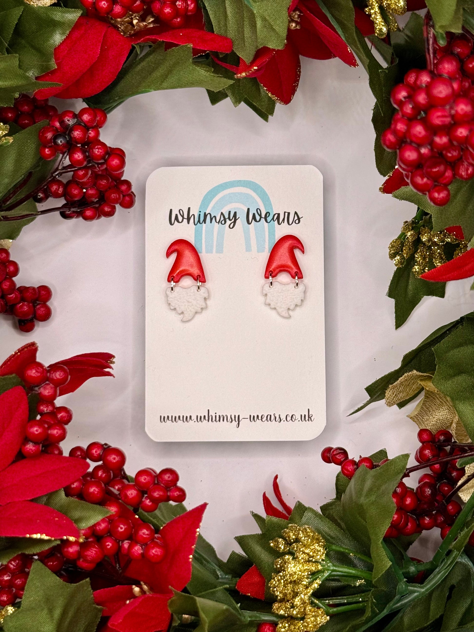 Gonk hat and beard earrings with a hypoallergenic stud back.