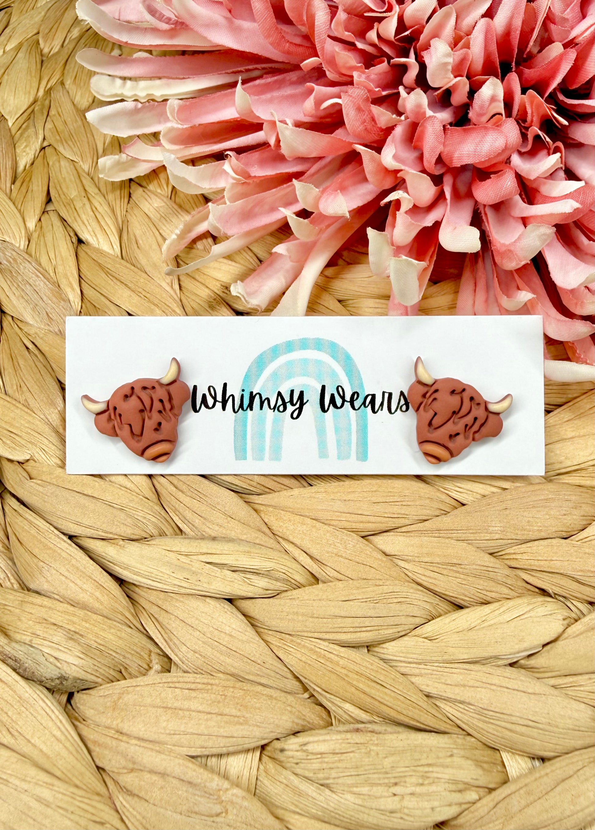Highland Cow stud earrings with hypoallergenic stud backs.