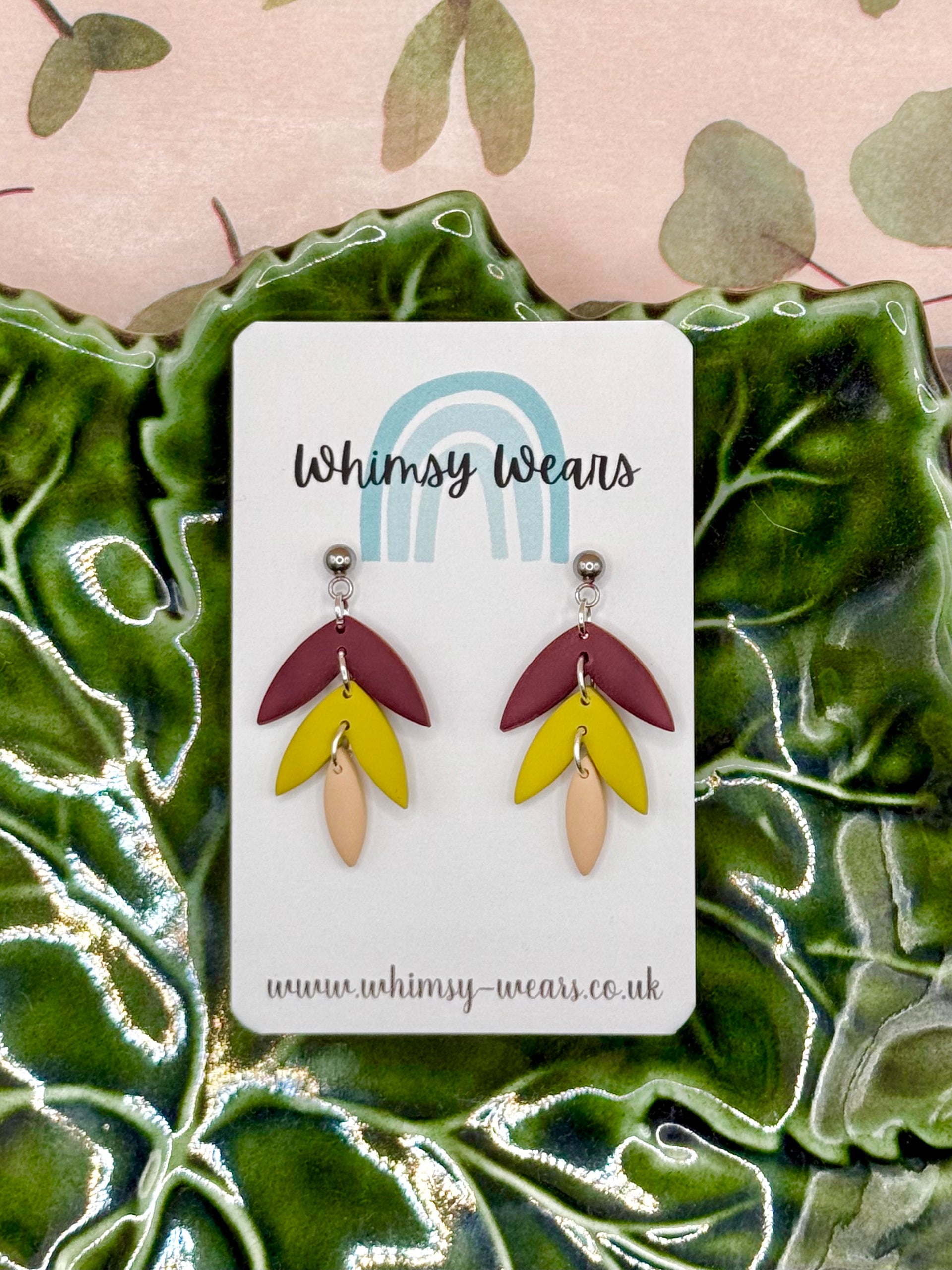 All of my earrings are handmade to order therefore colours and patterns may vary slightly.