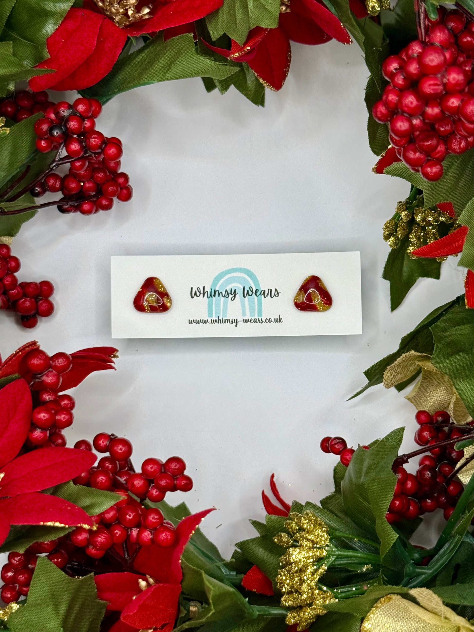 Red & Gold studs with hypoallergenic stud backs.
