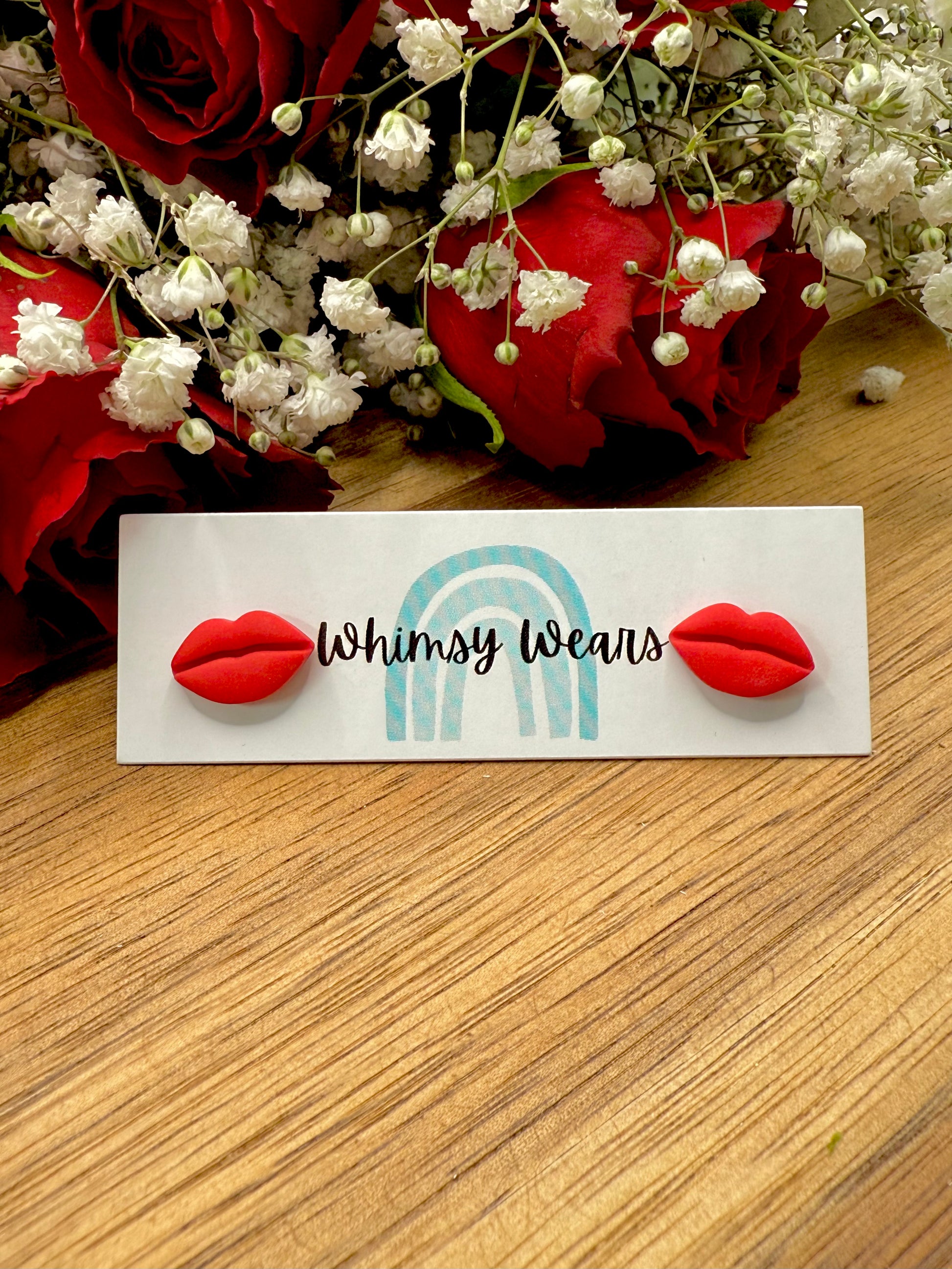 Valentines Red Lips studs with a hypoallergenic silver stud back.